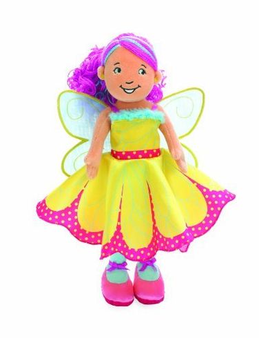 Becca looks like she just flew in from the garden. She comes wearing a dainty pink and yellow dress with strappy little pink shoes. Her hair is bright pink with blue highlights that match her wings and dress ruffle. Becca is part of the Special Edition Flutterflies collection with fantasy colored hair and detachable wings. She'll make a great gift for any gal! Measures 13"