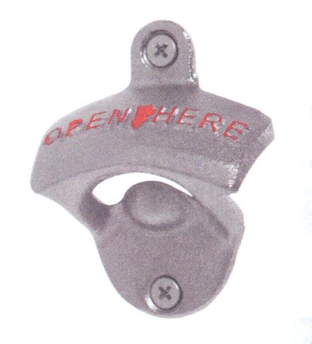 This bottle opener is chrome plated cast steel. It can be mounted for your beer bottle opening needs. AND- it has "Open Here" written on it for those inebreated folks who "forget" how to open their next bottle of beer. W 3"