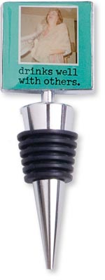 Text on Stopper: drinks well with others. Metal and rubber stopper. Approximate Dimensions: 4" x 1 3/8"