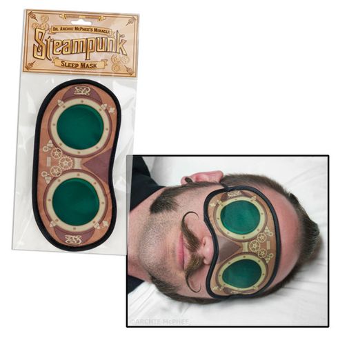 Steampunk refers to a specific genre of science fiction that takes place during Victorian times, but with old-timey versions of modern technology. This mask makes it look like you're wearing retro-futuristic goggles while you take your afternoon siesta. Buy them for your favorite nerd. Polyester with cotton back and_elastic band. Fits most heads._