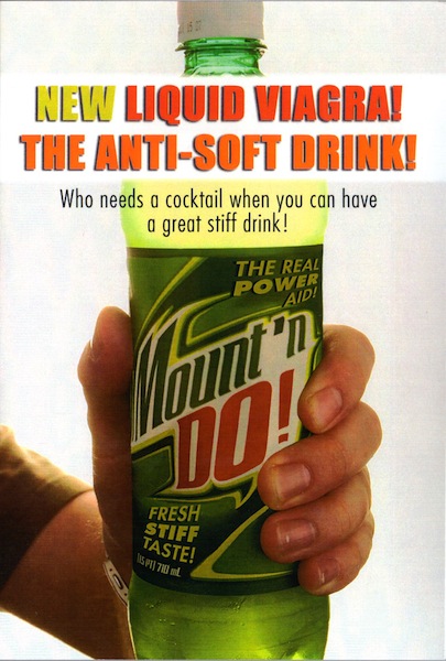 Outside: New Liquid Viagra! The Anti-Soft Drink! Who needs a cocktail when you can have a great stiff drink!