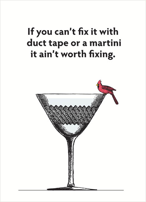 Outside: If you can't fix it with duct tape or a martini it ain't worth fixing.