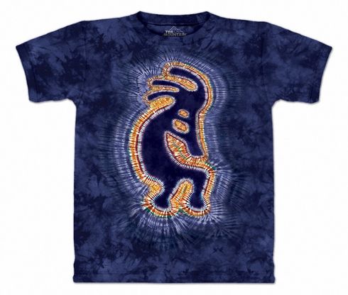 As Southwestern legend has it, the hunch-backed flute player known as Kokopelli was a healer, prankster, story-teller and...fertility god. He sure does play a mean flute and has seriously rockin' hair! Made from 100% ring-spun, soft style cotton. Dyed with organic dyes, and printed with water-base inks.