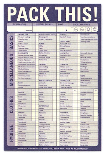 This is a handy travel reminder pad that keeps you fully equipped for jotting down your plans of going for a big trip. This notepad features 60 pages of uncoated text stock to make packing list of all your essential travel accessories. Equipped with a clipboard backing and adhesive binding, you can instantly stick this task list on any convenient place such as a wall or behind the door. This task pad tool includes an exhaustive checklist from anxiety medication to hygienic items so that you always have everything you would need.